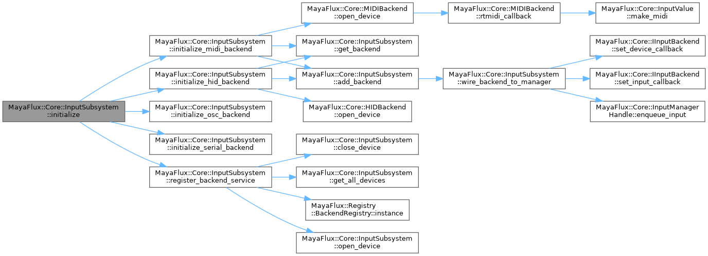 References MayaFlux::Journal::Core, MayaFlux::Core::HIDBackendInfo::enabled, MayaFlux::Core::MIDIBackendInfo::enabled, MayaFlux::Core::OSCBackendInfo::enabled, MayaFlux::Core::SerialBackendInfo::enabled, MayaFlux::Core::GlobalInputConfig::hid, initialize_hid_backend(), initialize_midi_backend(), initialize_osc_backend(), initialize_serial_backend(), MayaFlux::Journal::InputSubsystem, m_backends, m_config, m_handle, m_ready, MF_INFO, MayaFlux::Core::GlobalInputConfig::midi, MayaFlux::Core::GlobalInputConfig::osc, register_backend_service(), and MayaFlux::Core::GlobalInputConfig::serial.