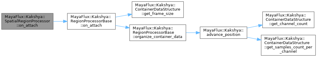 Validates that the container has at least one spatial dimension. Disables auto-caching (appropriate for live surfaces). Delegates to RegionProcessorBase::on_attach which calls organize_container_data().