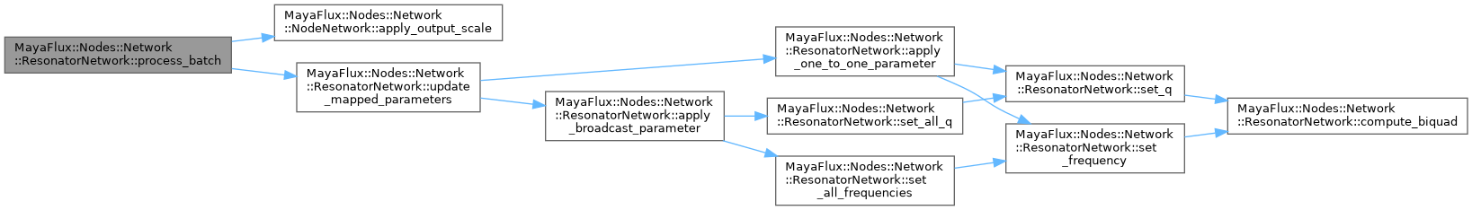 For each sample, each resonator draws from its individual exciter (or the network-level exciter, or zero if none) and processes one sample. All resonator outputs are summed and normalised into m_last_audio_buffer.